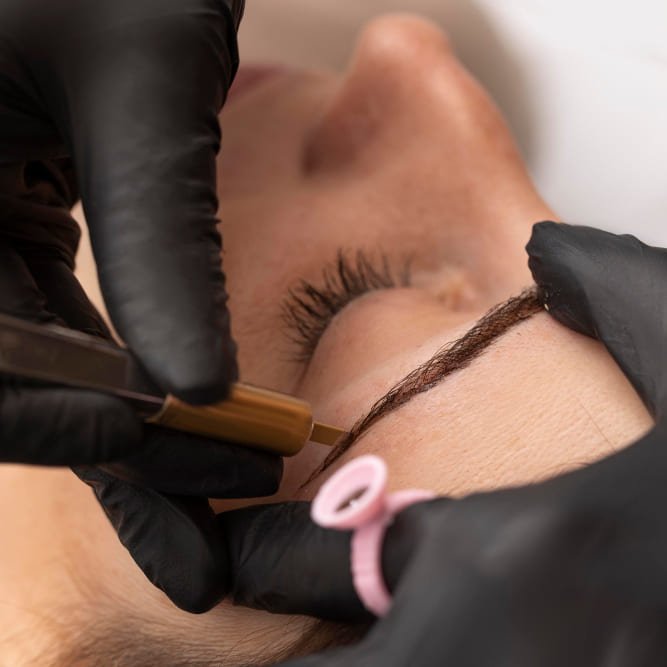 Microblading is a semi-permanent cosmetic procedure designed to improve the appearance of your eyebrows. Using a handheld tool with fine needles, our trained technicians create precise, hair-like strokes and apply pigment to the skin’s upper layers. The outcome is well-defined, realistic eyebrows tailored to your preferences. Unlike traditional tattoos, microblading offers a softer, natural effect, making it a favored option for those seeking an enhanced yet authentic look.